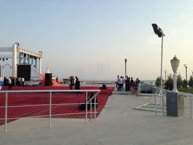 とんでもなく暑いのに若者たちの姿が。トルクメニスタンの若者たちがオープニングとフィナーレの踊りを練習してました。